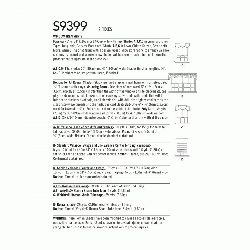 Simplicity Sewing Pattern S9399 Roman Blinds And Valances Sewdirect Uk